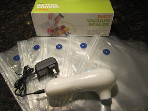 Handy Daily Vacuum Food Sealer with Five Zipper Bags 10" x 11"